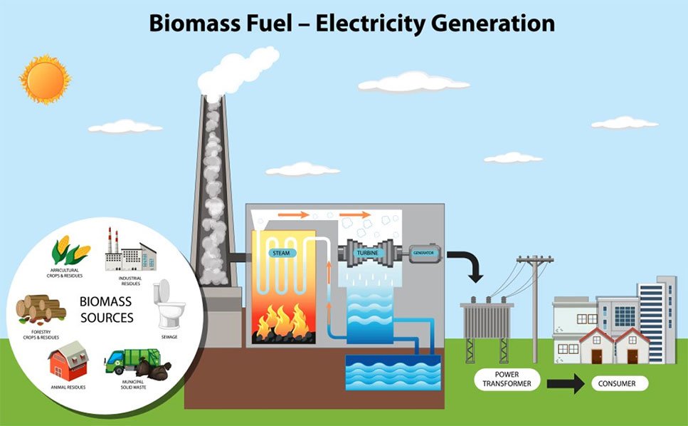 Biomass power plants generate electricity from agricultural residues widely available across the country.